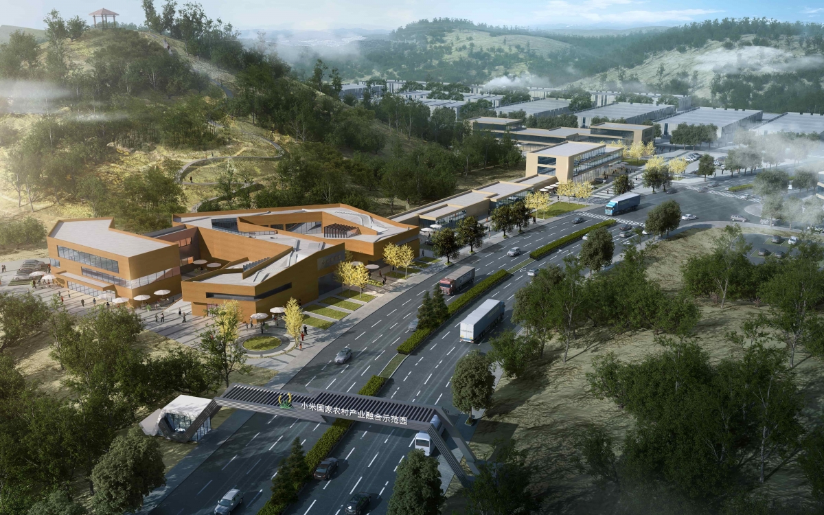 项目基地位于米脂县东山梁组团,占地54公顷(810亩),距离县城约5公里,基地南部和北部均为小米试验田及种子基地。本次规划着眼米脂县全域格局,围绕建设国家农村产业融合发展示范区的规划目标,发挥米脂小米国家品牌效应,加强区域协同及三产融合。在园区层面,侧重空间布局及建筑选型、落地实施等方面,具体包括以下内容: