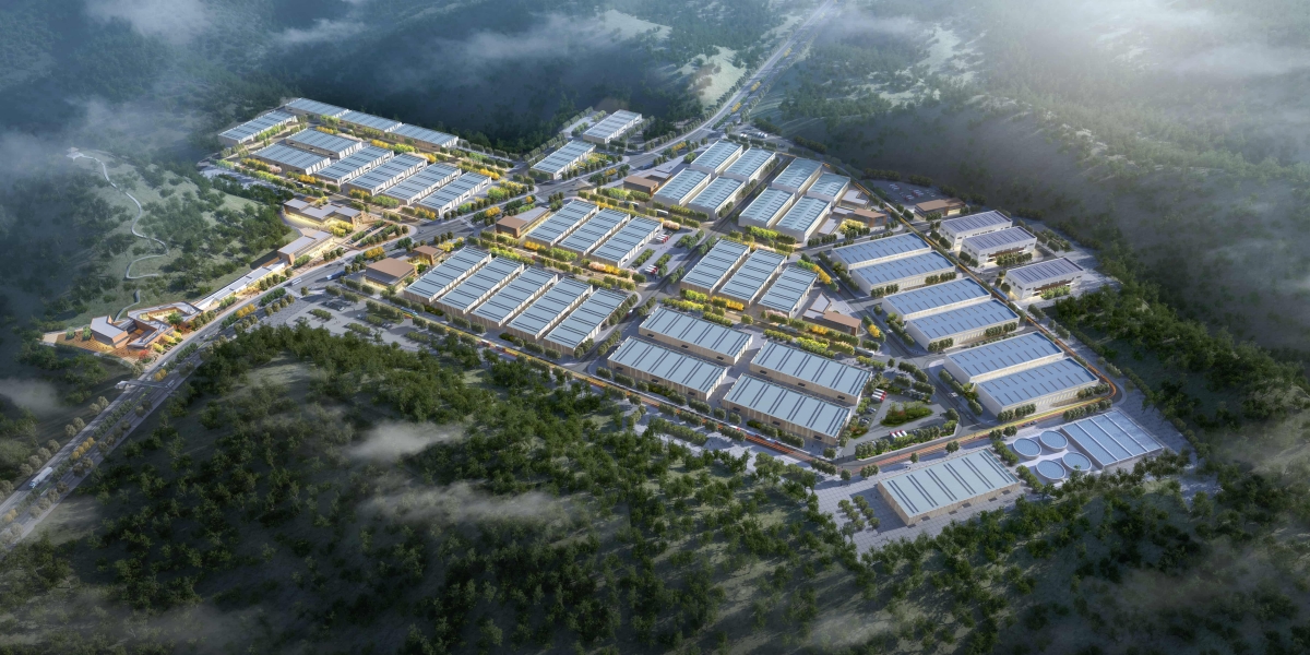 园区范围内涉及600余亩的填挖方区,同时,区域常年盛行西北风,加上周边山谷影响,形成天然风道,影响产业功能布局。本次规划首先针对场地填挖方区进行道路规划,保障道路及建筑基底安全;其次,巧妙利用山体间形成的山谷地带,构筑园区内部景观廊道,以带状形式构建园区绿地系统,形成“一带、一环、多点”的生态格局,有效提升园区生态环境。植物配置方面,以乡土植物中具备抗污染的植物为主,通过植物配置改善局部气候、净化空气、减少污染、保持水土。在核心建筑“三馆一中心”选型方面,突出区域整体风貌,同时兼顾防风、防沙等实用功能。